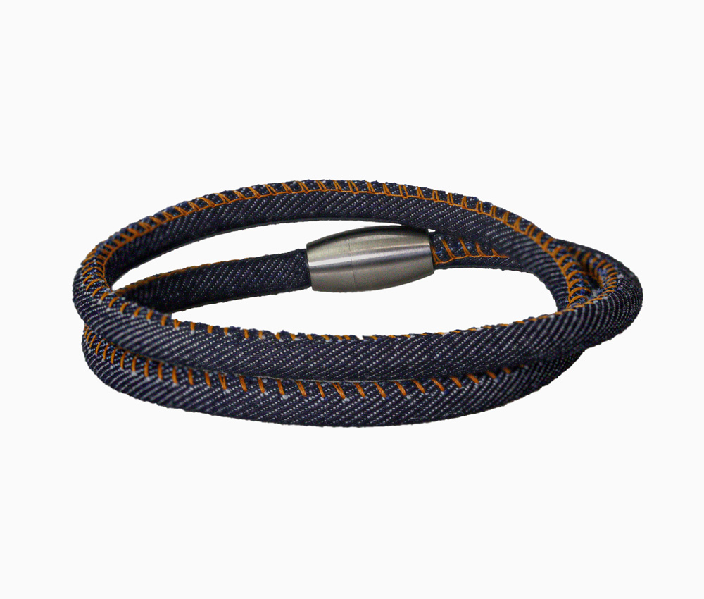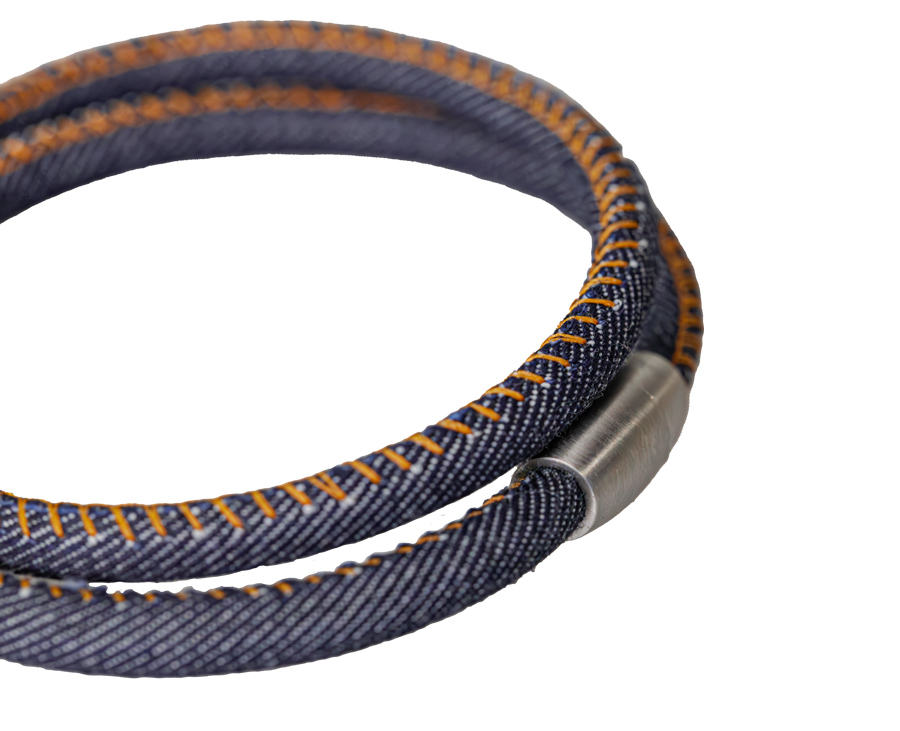 Das Bay-Jea Armband präsentiert sich in einem klassischen Jeansblau. Es ist doppelt gewickelt und ist mit einer praktischen Magnetschließe leicht zu Öffnen und zu Schließen.