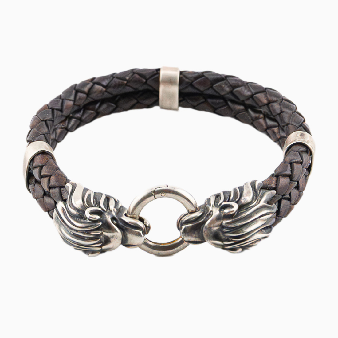 Die neueste Kreation in unserer beliebten „Hoamat-Chiemgaulöwen-Kollektion" besticht durch ihre zwei geflochtenen Lederstränge, die mit 3 Sterlingsilber-Spangen zusammengehalten werden.