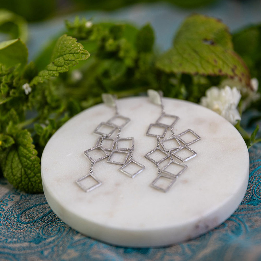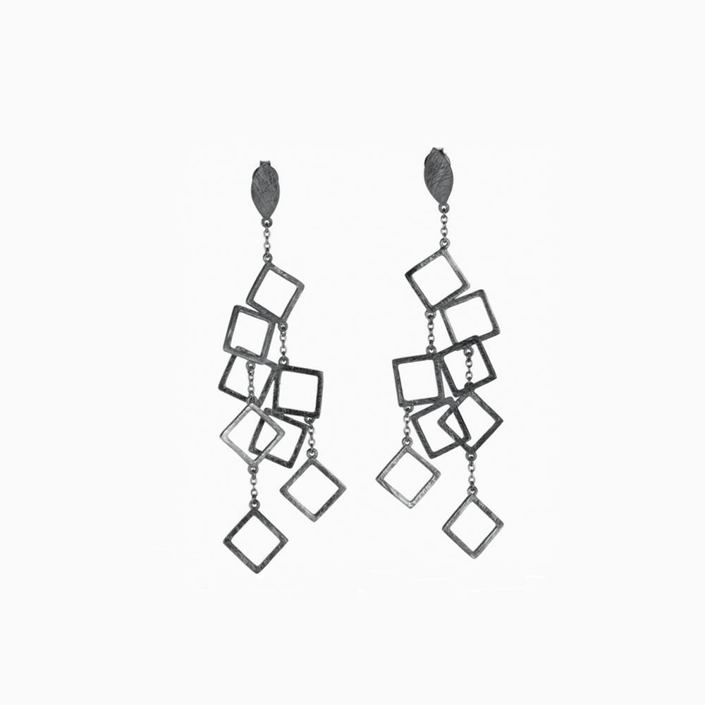 Cube Ohrhänger aus rhodinierten 925er Sterlingsilber • Länge ca. 78mm • Größe der Quadrate ca. 10x10mm
