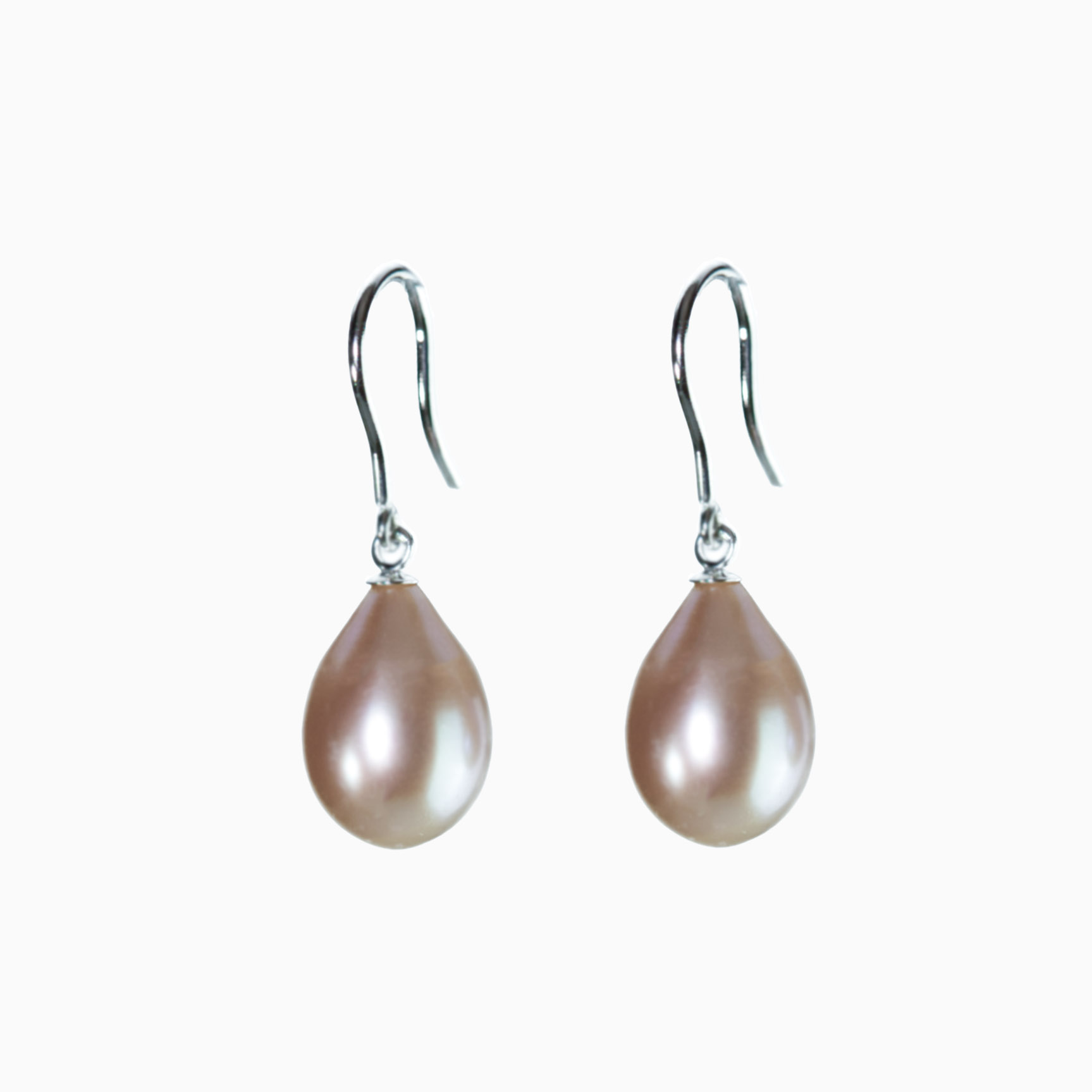Ohrhänger-Paar aus 925er Sterlingsilber mit zartrosa Süßwasserzuchtperle in Tropfenform, Größe ca. 10 mm