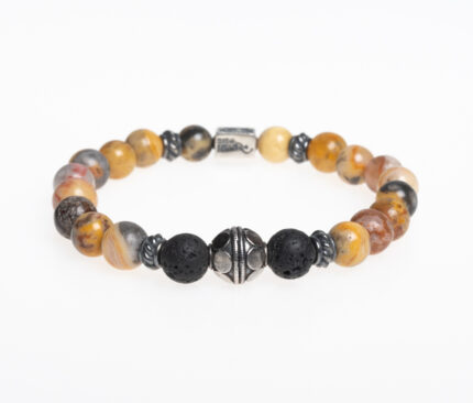 Elemente aus massiven Sterlingsilber treffen auf Edelsteine. Unser Ave Bavaria Armband „simple“, ein echter Hingucker an deinem Handgelenk mit vielen Details aus 925er Sterlingsilber, gegossen in der ältesten Gießerei Deutschlands und 8mm Edelsteinen, die auf einen flexiblen, besonders reißfesten Gummi aufgefädelt sind.
