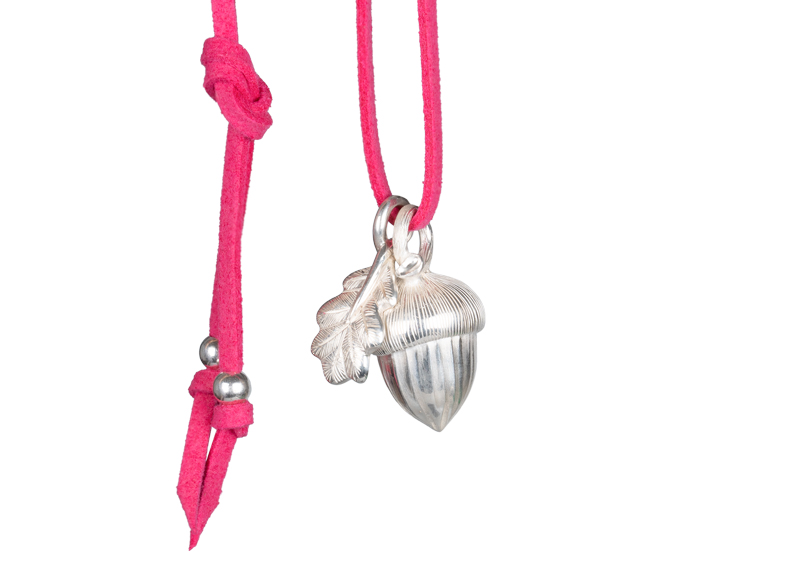 Du erhältst den jüngsten Spross unserer Eichel-Kollektion im Set gemeinsam mit dem dazu passenden Eichenblatt oder du entscheidest dich wahlweise für die Eichel oder das Eichenblatt. Beide befinden sich an einem pinkfarbenen Velourslederband, dass du jederzeit ganz einfach gegen die mitgelieferten Bänder in gelb oder grün tauschen kannst.