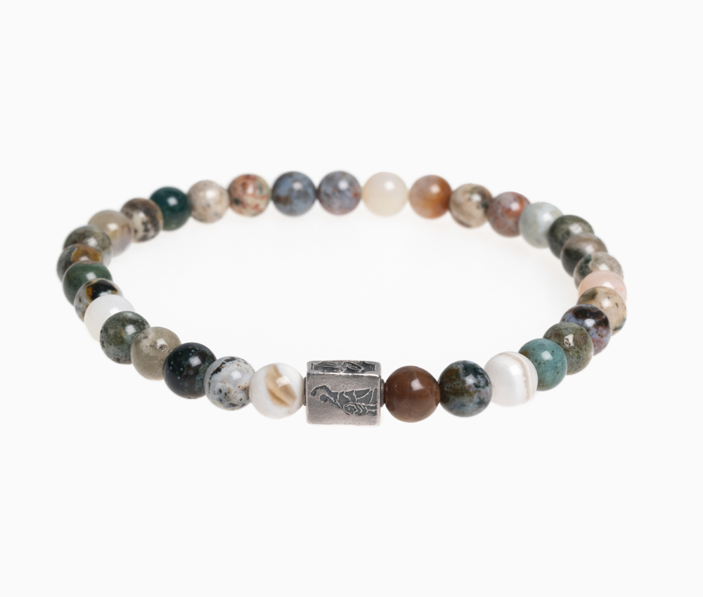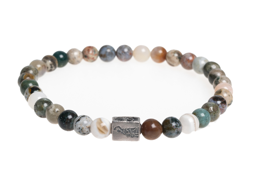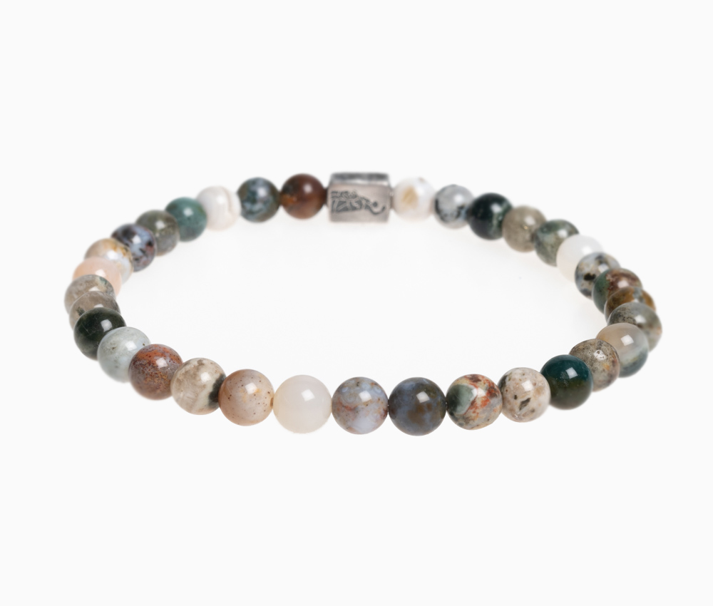 Edelsteinarmband aus 8mm Ocean Jaspis • Highlight: MAMMA BAVARIA Nugget aus 925er Sterlingsilber • Flexibles und besonders reißfestes Armband • Du erhältst das Armband in 3 bis 5 Werktagen