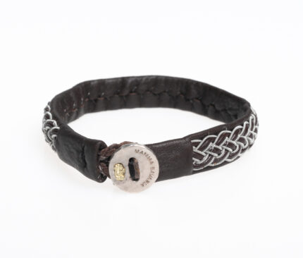 Werden die Armbänder traditionell mit einem Knopf aus Rentierhorn verschlossen, haben wir unsere "Sami Bavaria" an dieser Stelle mit einem Verschluss aus massivem 925er Sterlingsilber versehen und als Highlight mit einem Goldnugget aus 14 Karat Gelbgold verziert.
