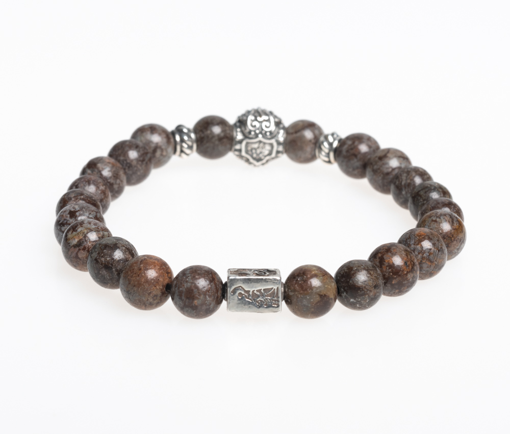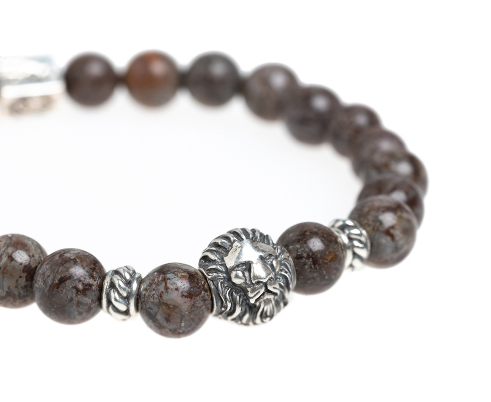 Edelsteinarmband aus 8mm braunem Achat • Chiemgaulöwe, MB Nugget und weitere Details aus 925er Sterlingsilber • Flexibles und besonders reißfestes Armband • Du erhältst das Armband  in 3 bis 5 Werktagen