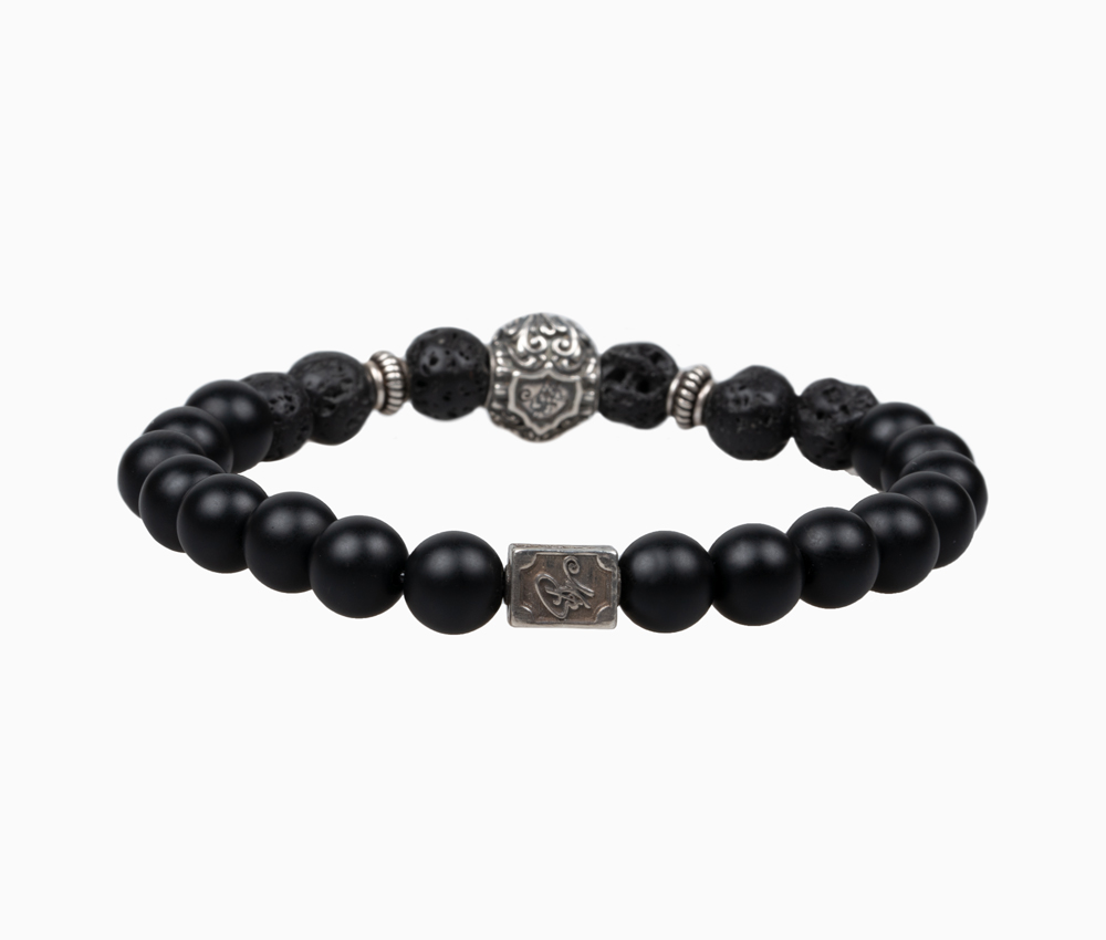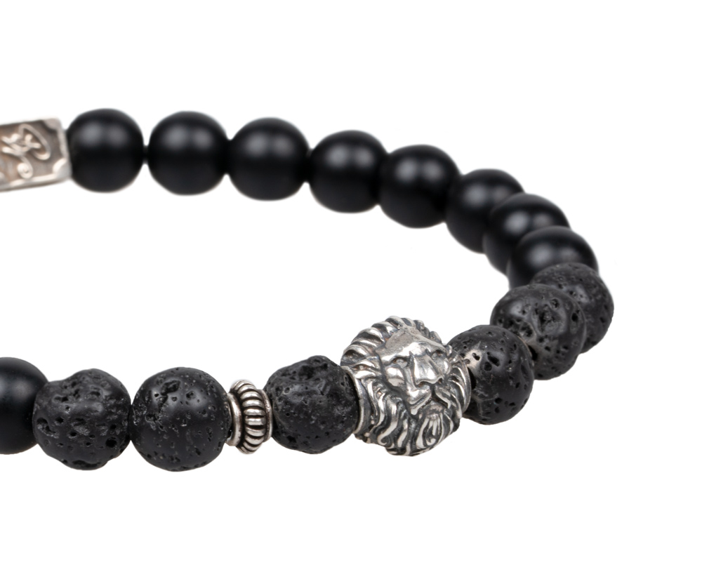 Edelsteinarmband aus 8mm mattem Onyx und Lava • Chiemgaulöwe, MB Nugget und weitere Details aus 925er Sterlingsilber • Flexibles und besonders reißfestes Armband • Du erhältst das Armband in 3 bis 5 Werktagen