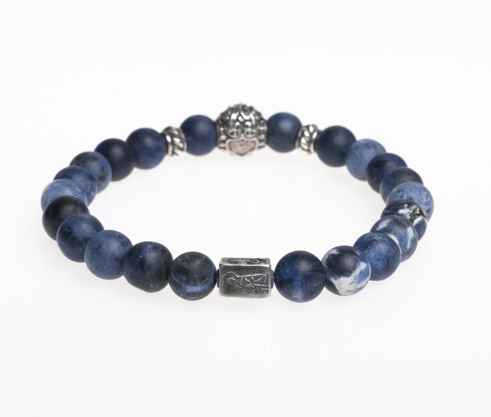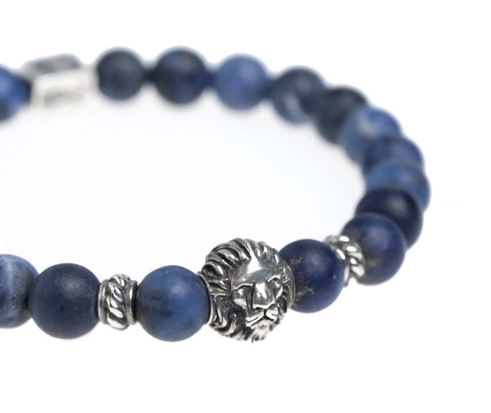 Edelsteinarmband aus 8mm Sodalith • Chiemgaulöwe, MB Nugget und weitere Details aus 925er Sterlingsilber • Flexibles und besonders reißfestes Armband • Du erhältst das Armband in 3 bis 5 Werktagen