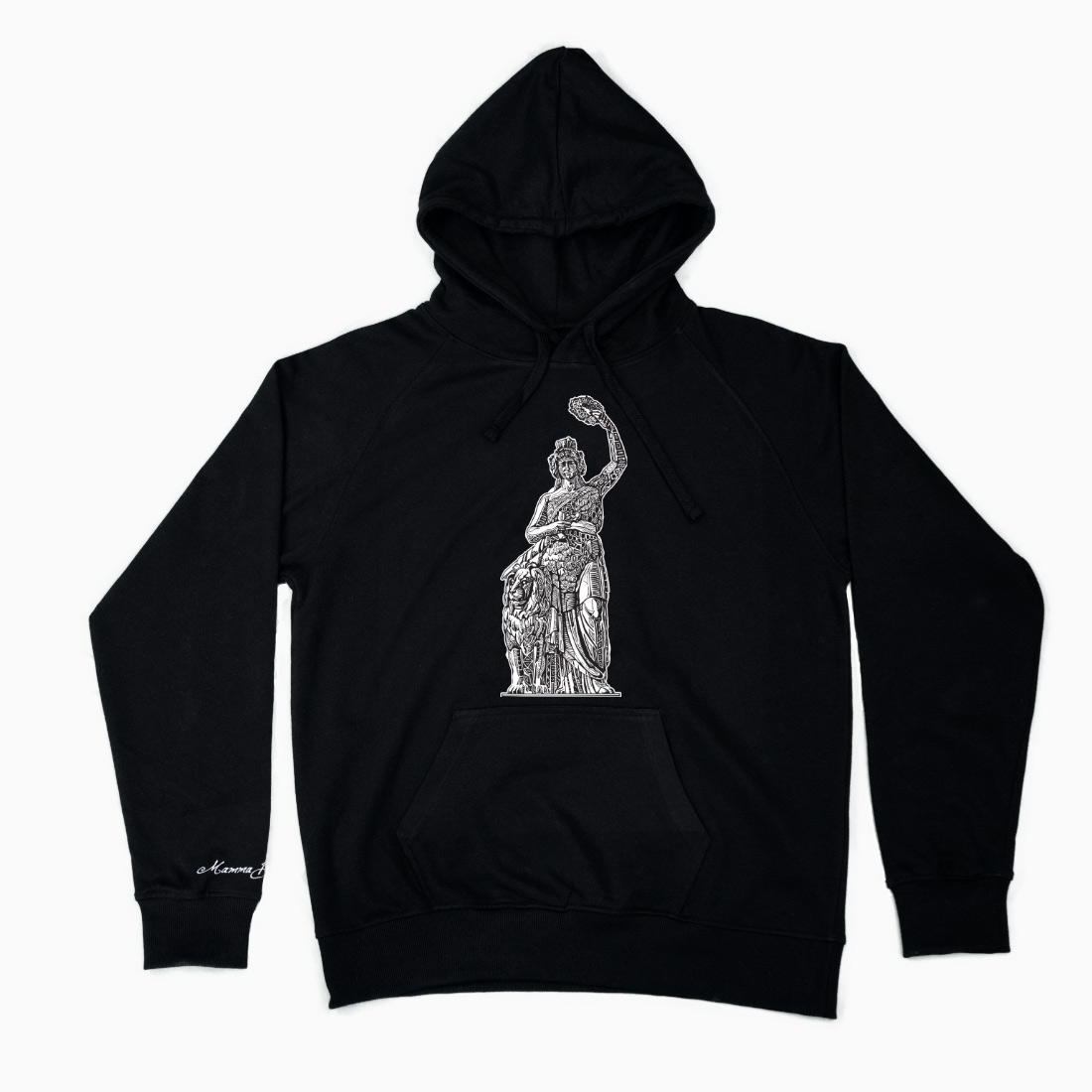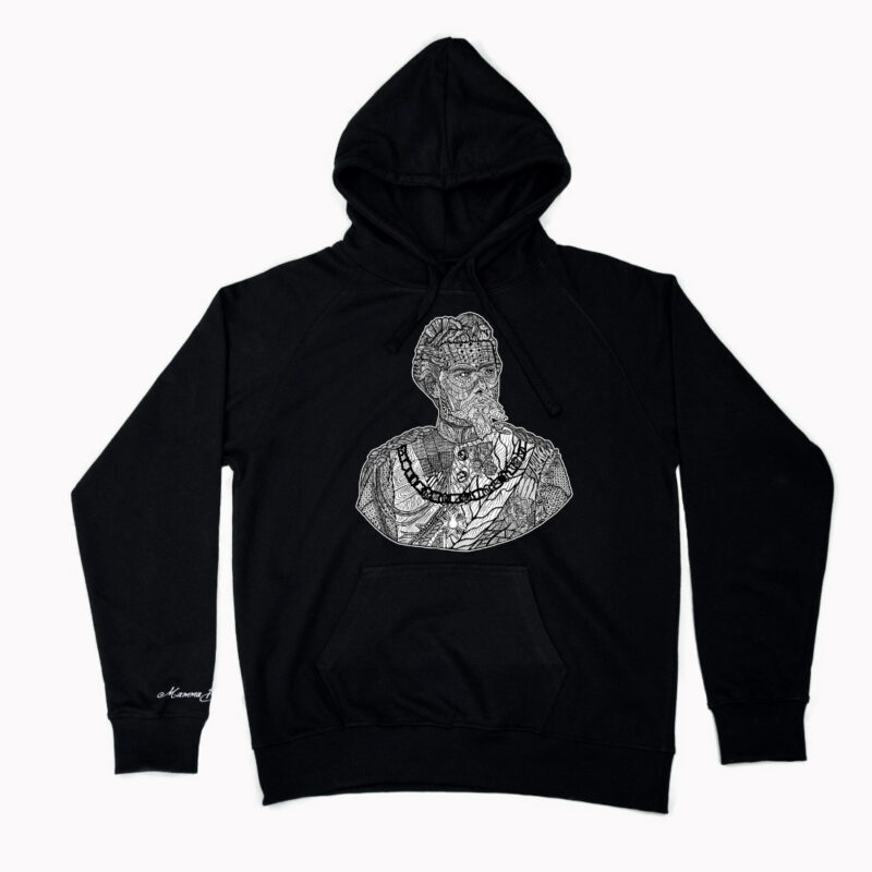Hoodie aus 100% Baumwolle • ÖKO-Tex zertifiziert Standard 100 • Mit handgezeichnetem Motiv der Bavaria im “Maori Bavaria” Stil • MB Schriftzug am rechten Ärmel
