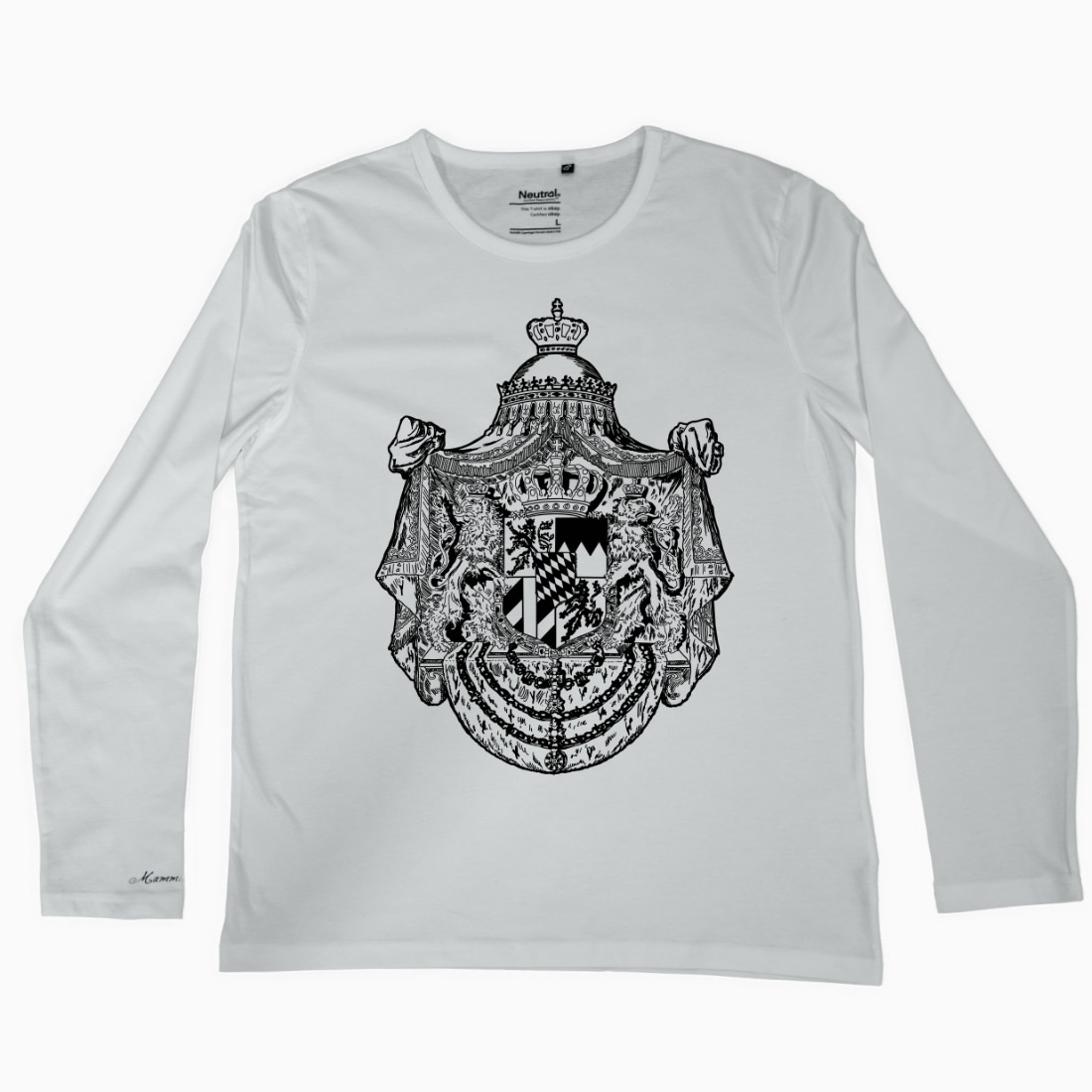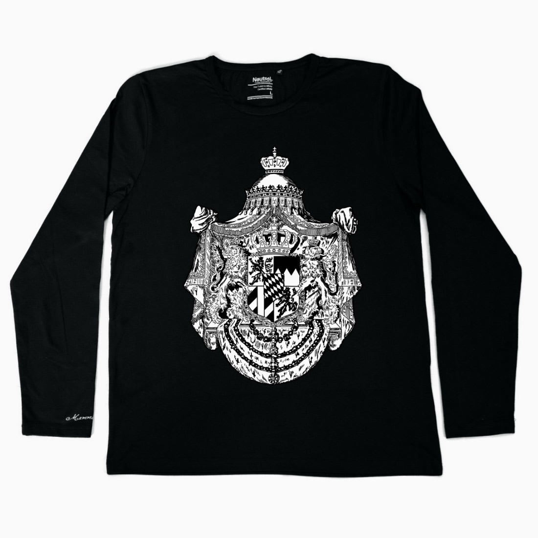 Langärmliges Shirt aus 100% Baumwolle • normale Passform • ÖKO-Tex zertifiziert Standard 100 • Mit handgezeichnetem Motiv im “Maori Bavaria” Stil • MB Schriftzug am rechten Ärmel