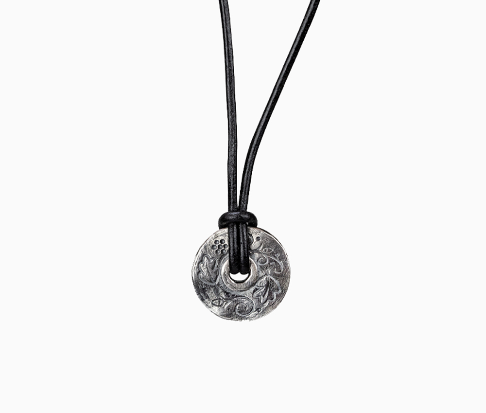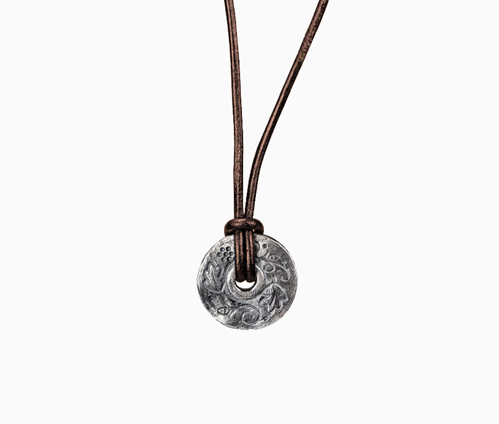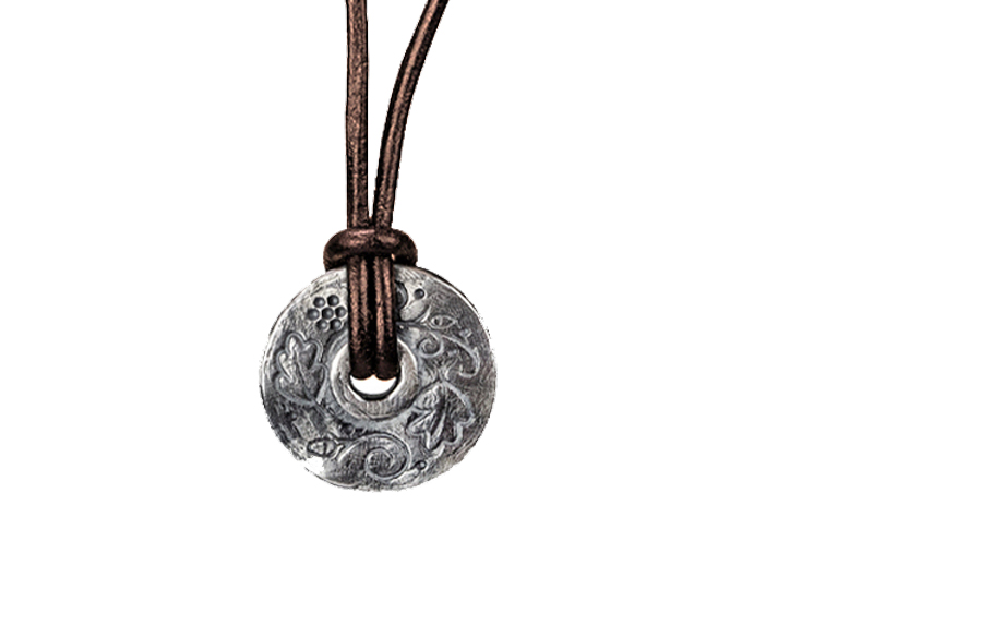 • Wahlweise an brauner oder schwarzer Lederkette
