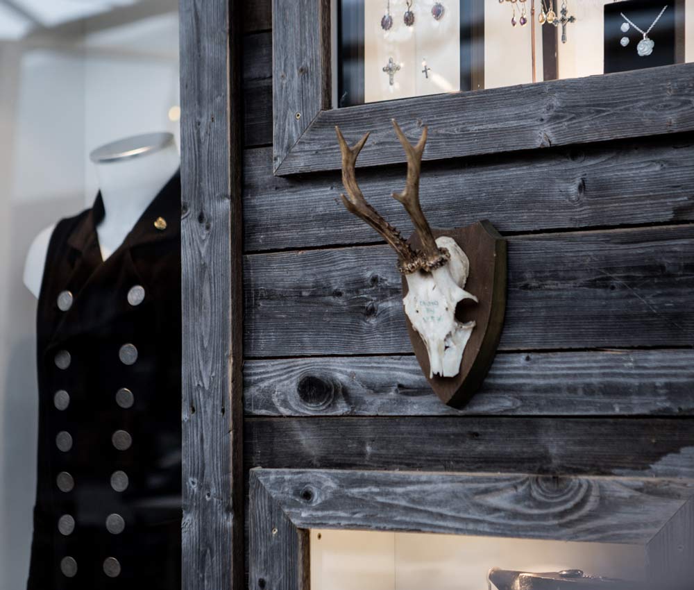 Die Holzdielen knarren, die Wände sind mit altem Holz verkleidet und Geweihen dekoriert.